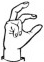 На ћирилици написано ТЕОДОРА БИЗУМИЋ састоји се из 14 слова [?]. Исписано ћириличном једноручном азбуком за глувонеме: